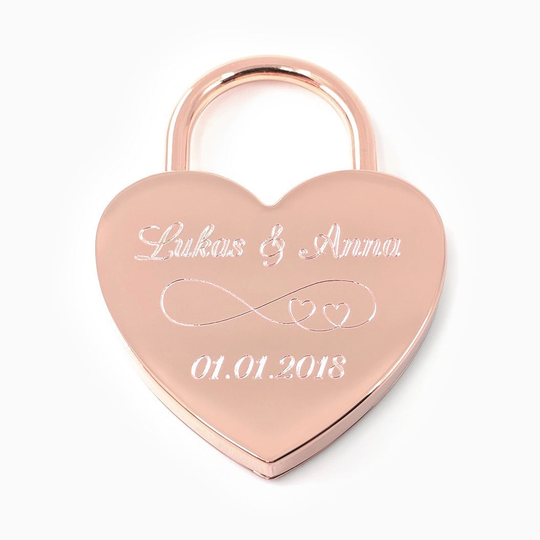 Die Roségold-Farbe steht für Intuition und Stärke. In der Farb- und Symbollehre wird sie mit dem Schutz vor negativen Energien und der Förderung von Harmonie in der Beziehung assoziiert. Mit seiner glänzenden Diamantgravur wirkt das Schloss edel und schafft eine harmonische Ausstrahlung.